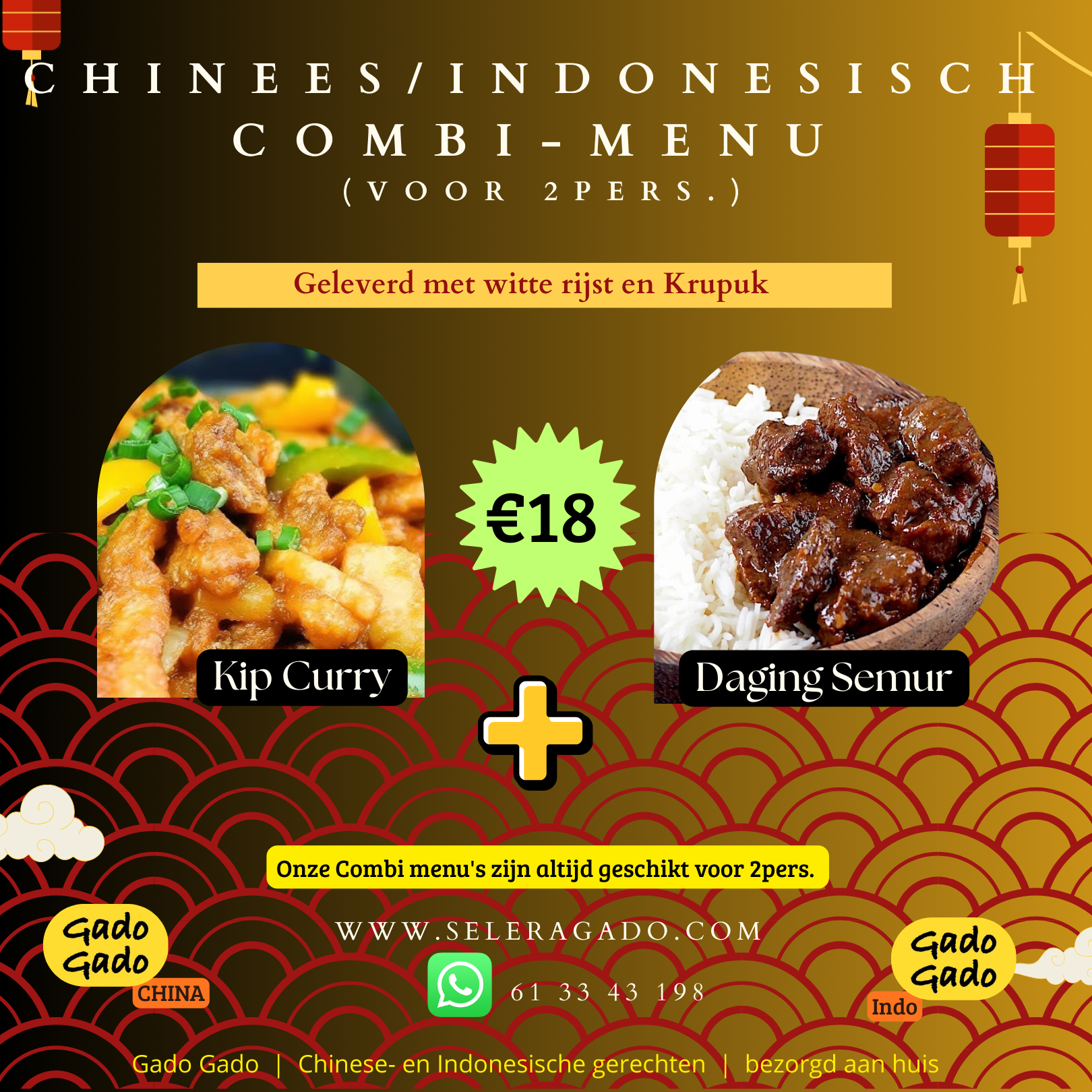 Onze Combi-Menu's zijn een veelgevraagd menu. Dit is natuurlijk logisch want het is een fantastische mogelijkheid om met z'n tweeën 2 (of meer) verschillende vers bereide Chinees/Indische gerechten uit te proberen.